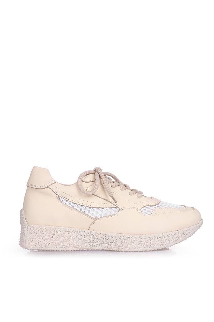 Hakiki Deri Krem Kadın Spor Ayakkabı Sneaker