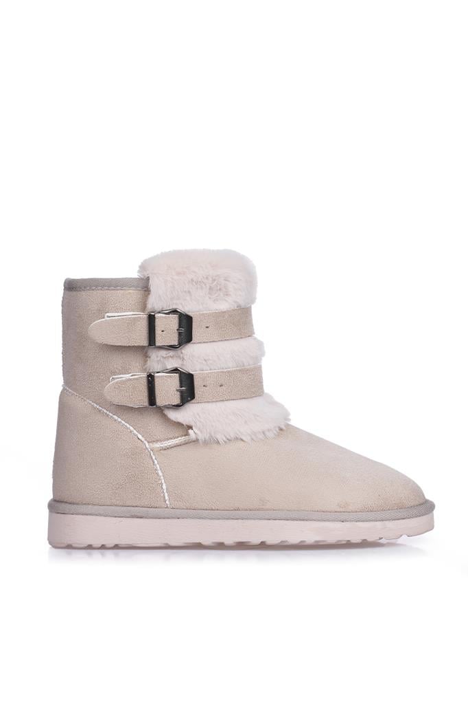 İçi Tüylü Çift Tokalı Taba Yarım Bot, Düz Taban Taba Süet Kadın Ayakkabı