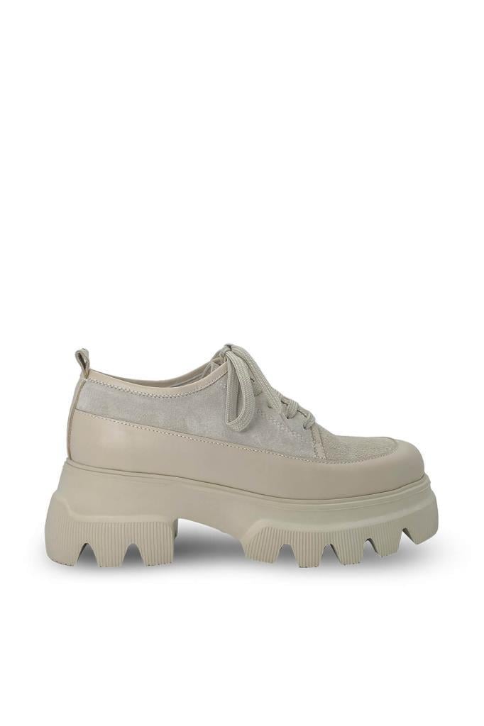Krem Gerçek Hakiki Deri Kadın Loafer Ayakkabı