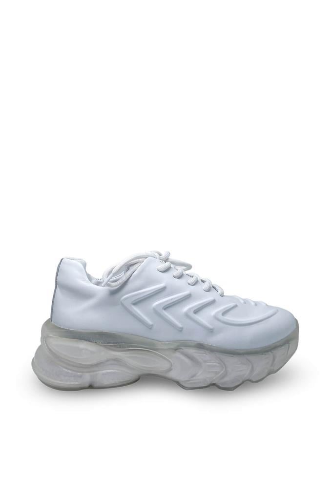 Şeffaf Kalın Tabanlı Kabartmalı Gerçek Hakiki Deri Beyaz Kadın Sneakers