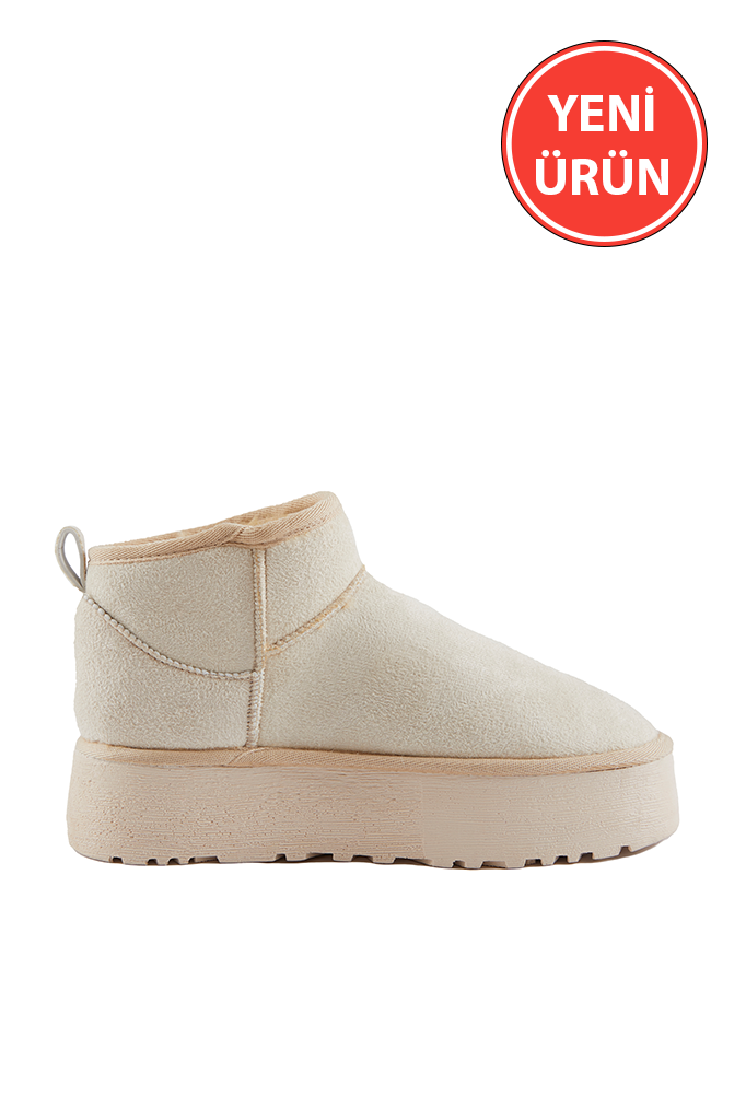İçi Tüylü Kalın Taban Bej Yarım Bot, Bej Süet Kadın Ayakkabı