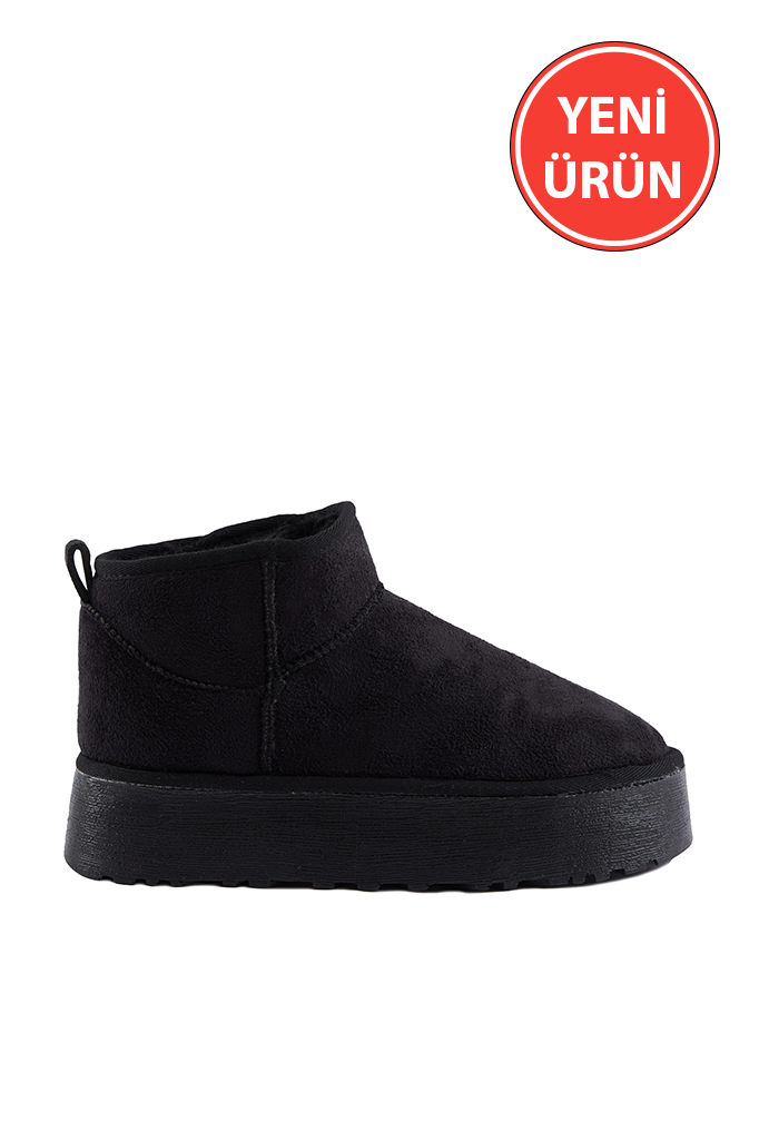 İçi Tüylü Kalın Taban Siyah Yarım Bot, Siyah Süet Kadın Ayakkabı