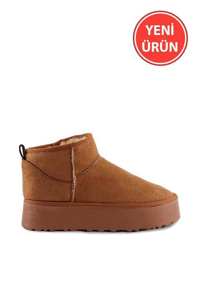 İçi Tüylü Kalın Taban Taba Yarım Bot, Taba Süet Kadın Ayakkabı