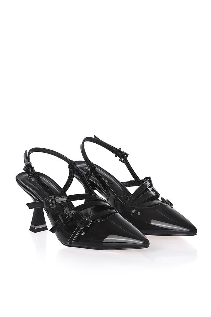 Toka Detaylı Sivri Burun Siyah Renk Kadın Topuklu Ayakkabı