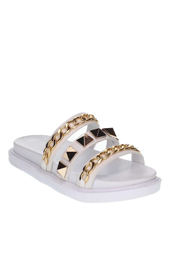 Zincir Detaylı Günlük Rahat Beyaz Kadın Terlik
